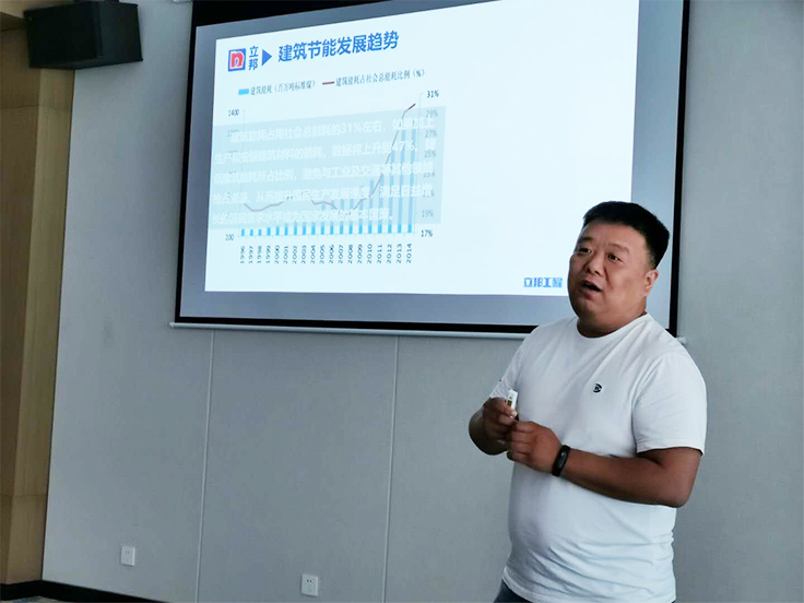 立邦總部專家李建鑫分別從建筑節(jié)能發(fā)展趨勢、節(jié)能裝飾一體板介紹、施工工藝等三個大方向上詳細講解了《節(jié)能裝飾一體板與裝配式建筑》在實際中的研發(fā)、生產(chǎn)及運用。