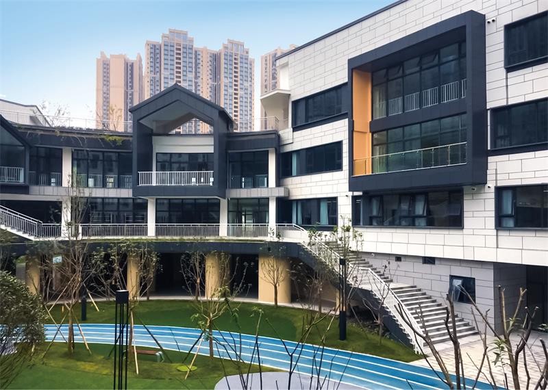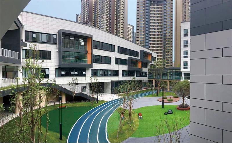 項目位于成都市龍泉驛區(qū),為上市企業(yè)天立教育集團旗下在成都龍泉建立的高端私立校區(qū)。我司承建了該項目的外墻保溫復合一體板、外墻鋁單板幕墻,工程外立面規(guī)模約 17000m ,采用仿石飾面效果保溫裝飾一體板系統(tǒng)。 在 2021 年該項目被成都市教育系統(tǒng)評為”最美校區(qū)“、“成都市教育示范校區(qū)”。